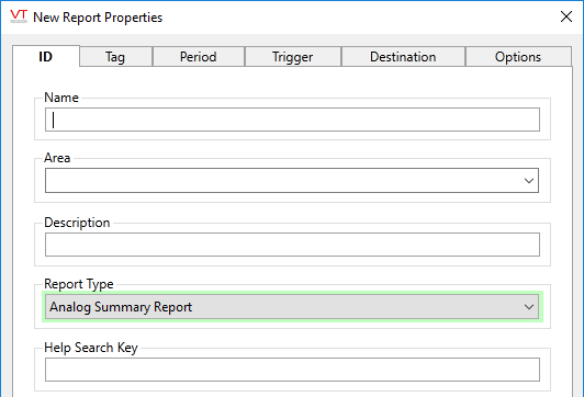 You may also leave the selection as "No Trigger" and draw this tag as a button that operators can press to generate reports on demand.