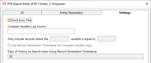 PVR Report Entity properties Settings tab
