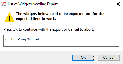 If exporting a page that contains custom widgets, you will be reminded that those must also be exported.