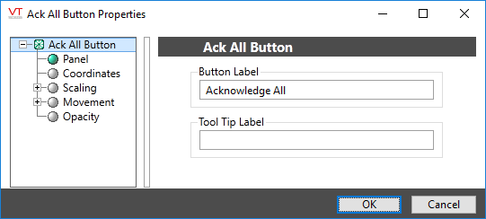 The properties dialog for the Ack All button:
