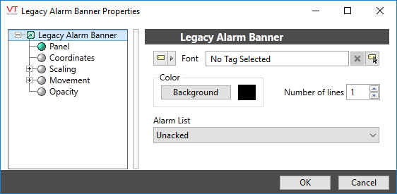 Provided for backward compatibility, this will create the legacy Alarm Banner, which existed in VTScada prior to version 11.2 Do not use in new applications.