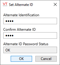 The status field will update to tell you whether the identification is valid. No two users may share the same alternate identification. - Type the same series of numbers into the confirmation field and press enter or tab.