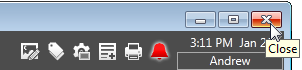 - Click the X at the upper right corner of the main VTScada screen (provided that window was configured to include a border and the Windows® controls.)