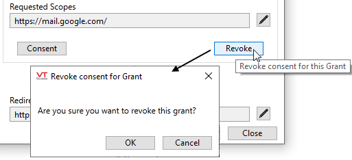 You may revoke consent for a grant at any time. Use the Revoke button and confirm that you wish to proceed.