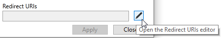 The scope is the service for which you are authorizing access. - Select the pen beside the Redirect URIs field to open the Redirect URIs editor.