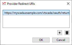 Fully Qualified Domain Name's of your VTScada OAuth servers, along with the VTScada OAuth path which is "/vtscada/oauth/return".