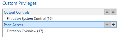 Privileges and sections can be reorganized using the up / down arrows at the bottom right of the list.