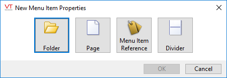 The steps to add a folder, divider or menu item reference are much the same, differing only in the dialog boxes and options along the way.