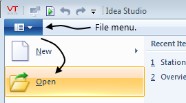 If the page is not already open, or available for selection from the tabs at the bottom of the Idea Studio, click File, then Open.