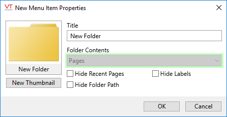 The following options exist only when a folder is being added to the Page Menu branch. They are not available in folders added to any of the palettes.
