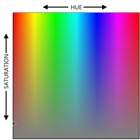 Describes the intensity of the hue. In this dialog, saturation can range from zero to four, with one representing the originally defined saturation.