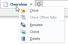 Across the bottom of the Idea Studio, all the currently open pages and widgets will be listed. You can click any page or widget's tab to open it for editing. You can click the (+) sign to the right of the tabs to either open a currently closed page or widget, or to create a new one. You can also right-click a tab to open a menu of file-commands for that page or widget.