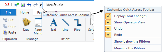 Customization options of the Quick Access toolbar