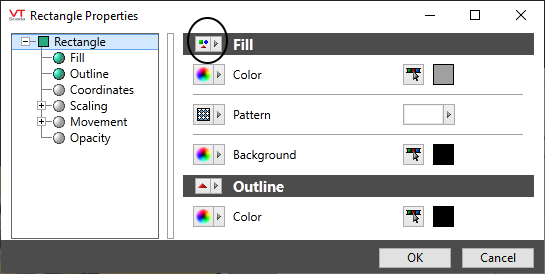 After drawing the shape on a page, you can adjust its appearance using either the ribbon tools or the shape's properties dialog. The properties dialog for a rectangle, with the Advanced options opened is shown in the following example. All shapes will have a similar properties dialog.