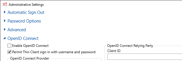 At least one of Enable OpenID Connect or Permit Thin Client sign in with username and password, must be selected. If not, all Internet and Mobile sign in attempts will be met with the message "No sign in methods are available".