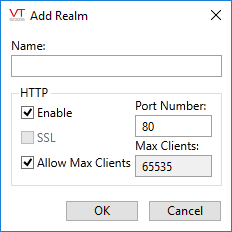 The new realm is created, and you are returned to the VTScada Thin Client / Server Setup dialog where the new realm appears in the Realm drop-down list.