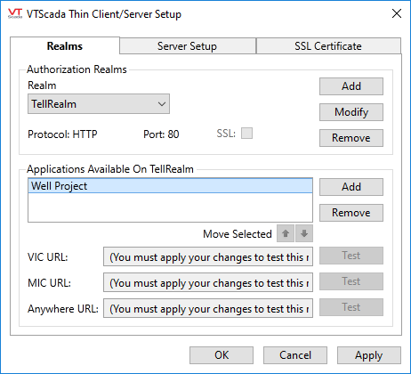 You are returned to the VTScada Thin Client / Server Setup dialog where the selected application is added to the realm.