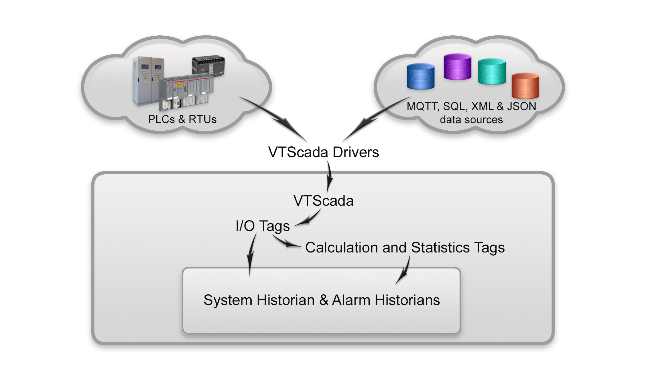 In VTScada, data comes from tag values. At a minimum, you can count on the following three pieces of information being available: