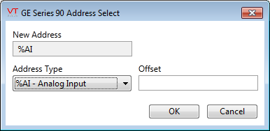 The input / output tags addressed under the GE Series 90 Driver use the addressing system in the following table. An assist dialog is provided to help you create these addresses.