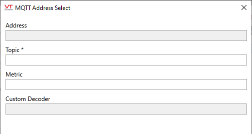 - When the driver is in Sparkplug B mode, Topic, Metric and Custom Decoder will not be shown. Instead, the dialog will display a tree of addresses. This information is obtained from the BIRTH certificate.