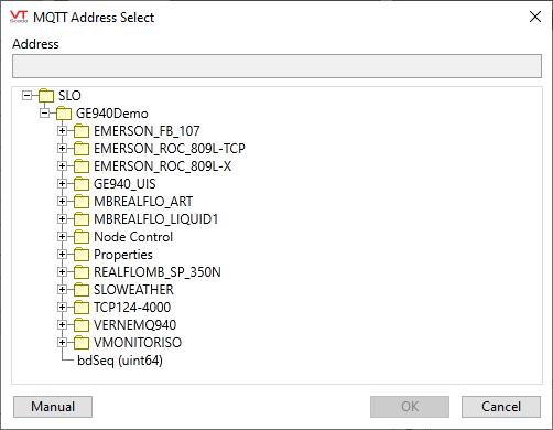 MQTT Address Assist dialog - manual mode