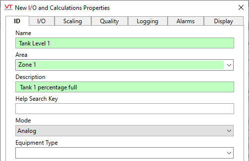 ID tab of the I/O tag's config. folder