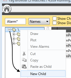 The new tag will be referenced by its Name and Description in the Tag Browser’s tag list. A tag's full name includes the name of all it's parent tags, separated by backslashes. This can sometimes become too long to display in a field, in which case VTScada will abbreviate the displayed name. Hover the pointer over the field to see the full name, displayed within a tool tip.