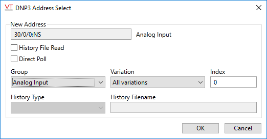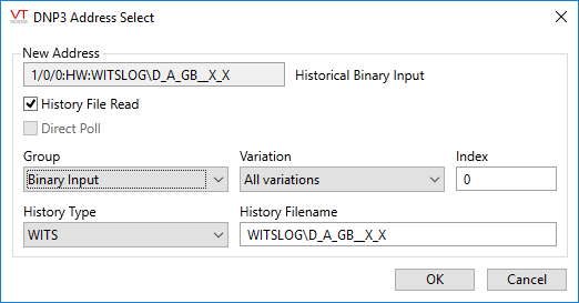 - V is the DNP3 variation, for History Reads this should be 0 (all variations).