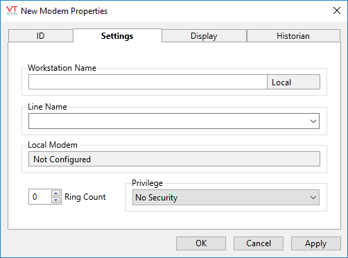 Local modems are typically used only if PPP is being used by VTScada, or in a system with custom software designed to use local modems. Under typical operating conditions, Trihedral recommends that local modems NOT be used.