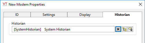 If an Historian tag is selected, this tag's run-time values will be saved for use in reports and the Historical Data Viewer. Historian configuration and advanced logging options are described in the discussion of the Historian Tags.