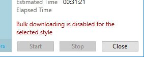 - If the provider of your currently selected map style does not allow bulk downloads under their terms of service, you will be warned upon opening the tool. The start button will be disabled.