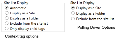 Tags designed to contain other tags. Includes Polling drivers and DFS stations, Context tags and user-defined types derived from Context tags, Stations, Analog Statistics and Digital Statistics.. Site tags include the Polling Driver, DataFlow RTU, MultiSmart, MPE Duplexer, MPE SC, Context tags and user-defined types derived from Context tags, Analog Statistics and Digital Statistics.