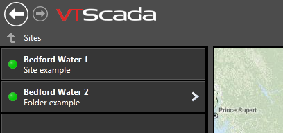 - Display as Folder: Indicated by an arrow. A click will change the list to show the child tags of this site. At the top of the new list a back arrow will be added to allow operators to navigate back out of the site.
