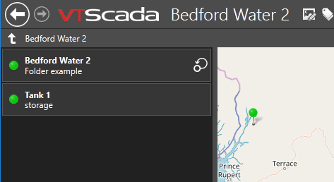 As an example, in the following image of a Site page, Bedford Water 1 and Bedford Water 2 are context tags, identical in all respects except for their name, description and the fact that Bedford Water 1 was configured to display as a site while Bedford Water 2 was configured to display as a folder. Both contain I/O tags and a child context, Tank 1.