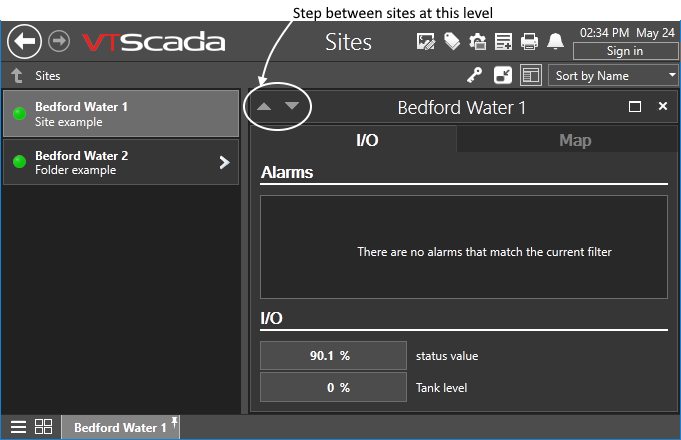 In previous versions, clicking the bottom-most node in a sites hierarchy would open the Site Details page as a pop-up. If an intermediate node in the sites hierarchy contained I/O as well as child sites, the I/O values were displayed below the child sites in the Sites List portion of the Sites Page.