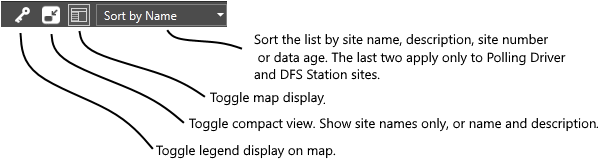 This topic describes the list portion of the Sites page. Information about the optional map portion of the page is provided in the topic, Site Map.