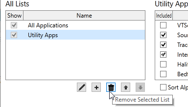 The default list is "All Applications", although this label does not appear until at least one other list exists. Every application will always be a member of the All Applications list.