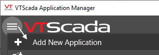 Create applications and add them to the VAM using the Add Application tool, found in the triple-bar menu at the top of the window as "Add New Application". Use this tool either to create a new application or load an existing one.