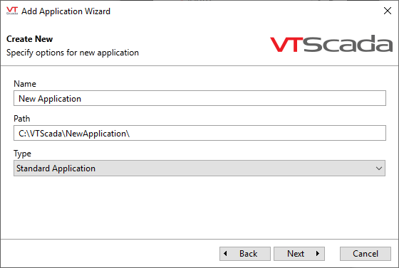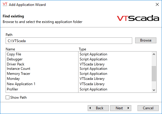 - The path will include the VTScada installation folder and the name of the application, with spaces and other symbols removed. You may choose or create a different path, but it is seldom useful to do so.