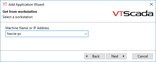 On a network with a properly configured domain name server, all local machines that have VTScada installed should be available for selection in the drop-down list. - Click Next.