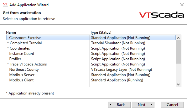 Applications available on the selected workstation are shown. An asterisk will mark ones that already exist on your workstation.