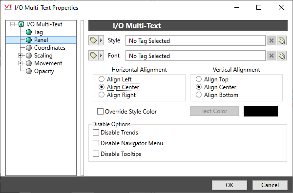 The color used for the text comes either from the Style Settings tag, or can be defined using an override in the following properties dialog.