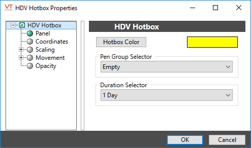 The properties dialog for the HDV Hotbox widget: