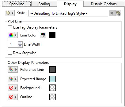 The option to use tag display parameters is available only when the widget is linked to an I/O and Calculations tag, and display parameters are set within that tag.