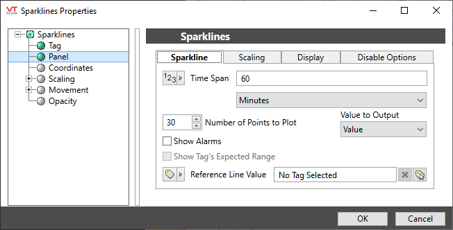 Scaling tab of the Sparklines widget