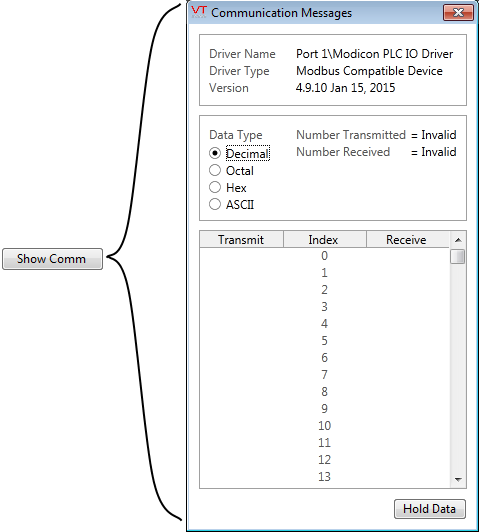 Hold Data The Hold Data button will freeze the display. Otherwise the dialog updates continuously as messages are transmitted.