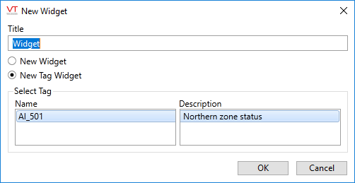 When creating either a plain widget or a tag widget, you will see the New Widget dialog.