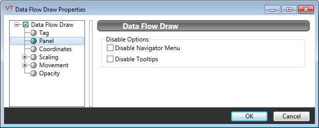 The properties dialog for the widget. As shown, the only configurable options are to disable tooltips and the navigator menu.