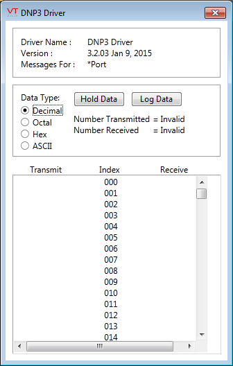 Log Data (Unique to the DNP3 driver.) Data will be logged to a text file in the application's Data\TraceFiles folder while the LogData button is pressed.