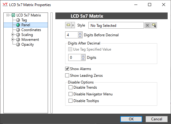 If linked to an I/O and Calculation tag, you can choose to use the current Digits after Decimal setting from the tag's configuration instead.